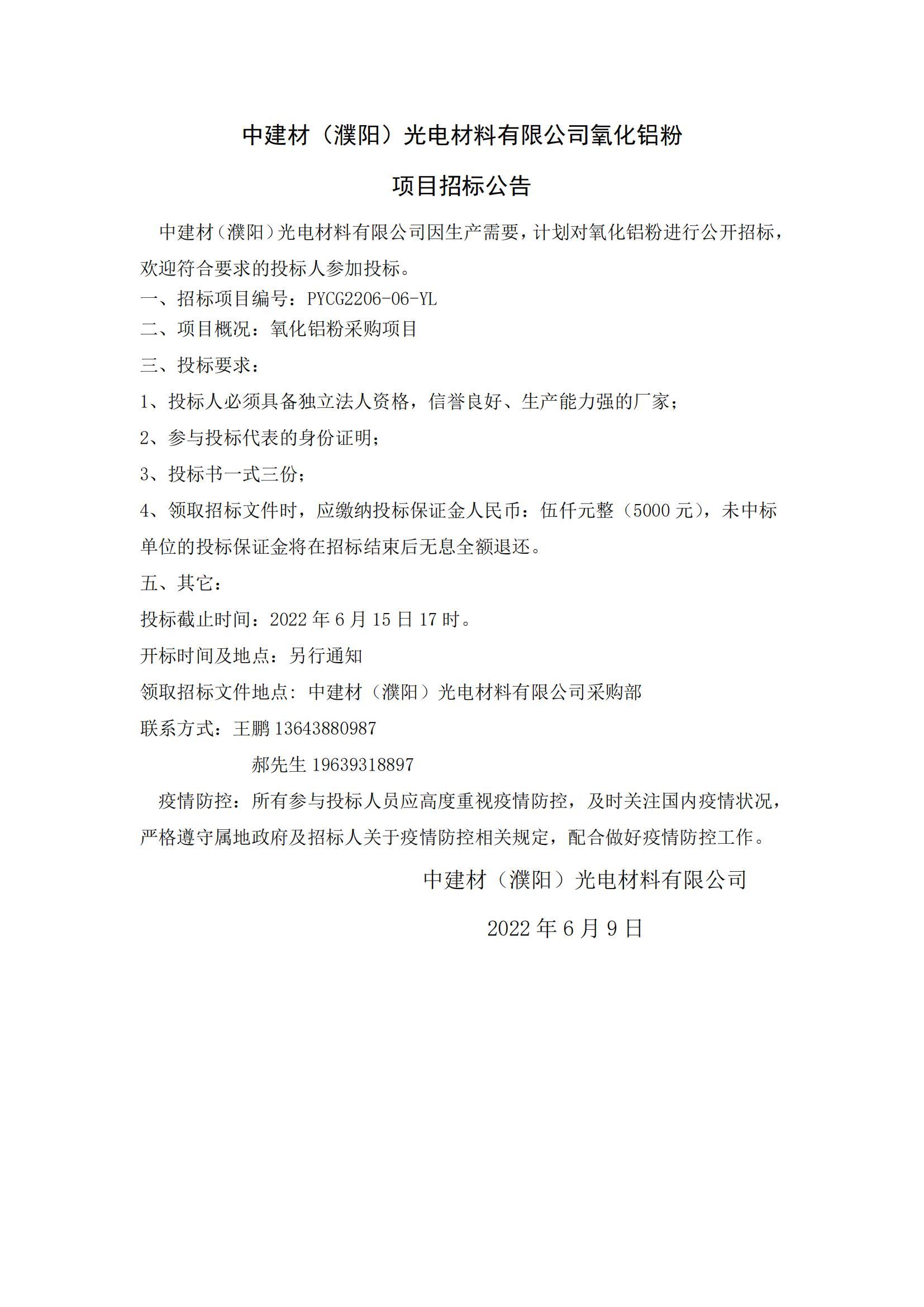 中建材(濮陽)光電材料有限公司氧化鋁粉項目招標公告