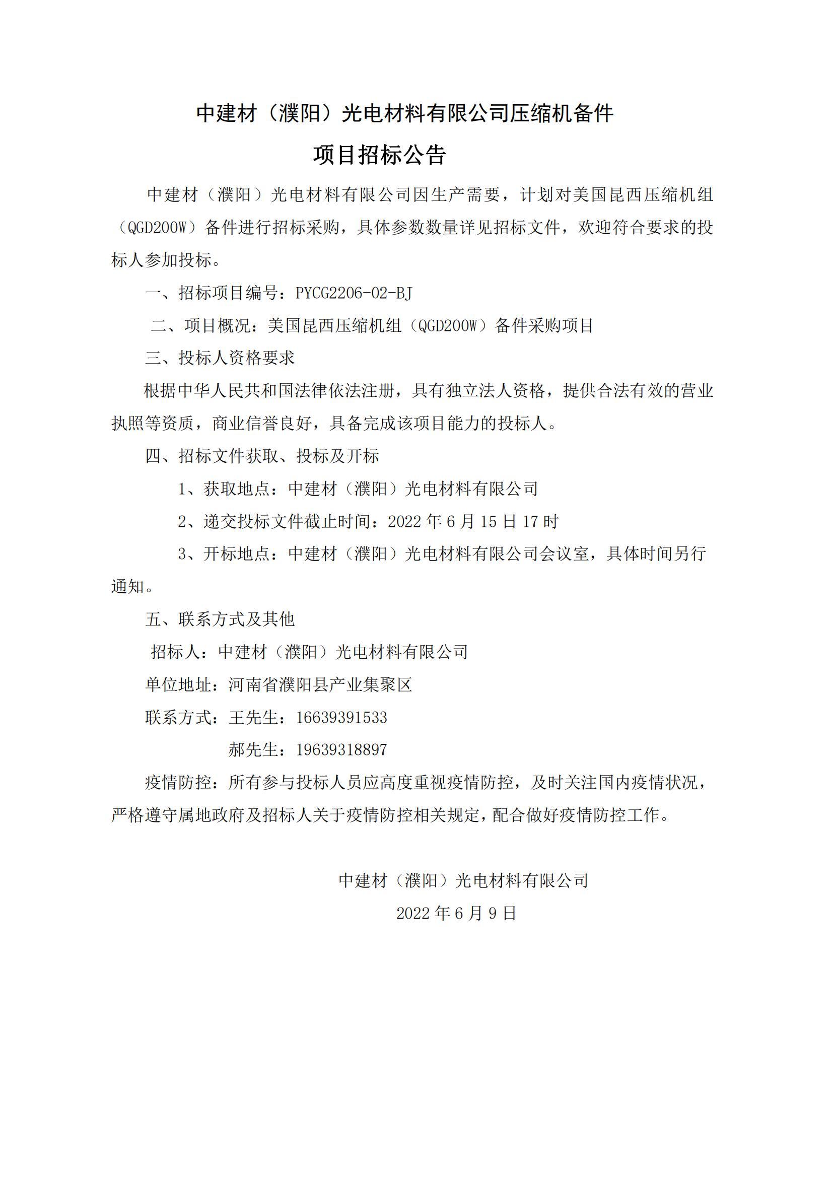中建材(濮陽)光電材料有限公司昆西壓縮機備件項目招標公告